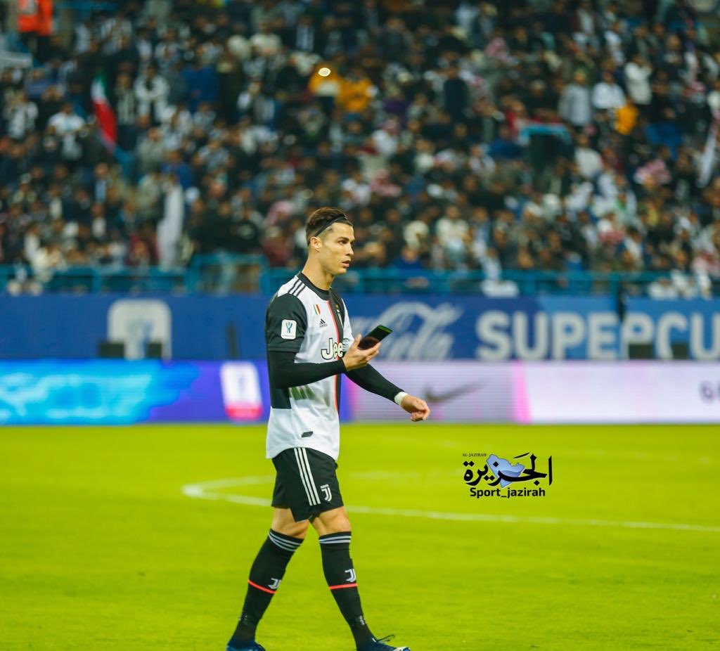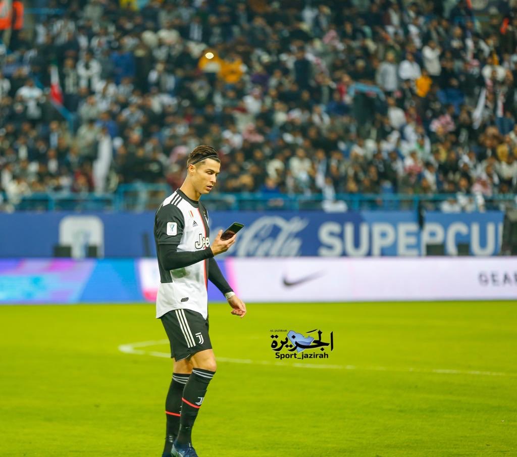 فوجئ النجم البرتغالي كريستيانو رونالدو بهاتف محمول ملقى في وسط الملعب في المباراة التي جمعت ناديه يوفنتوس مع لاتسيو في كأس السوبر الإيطالي، اليوم الأحد، على ستاد جامعة الملك سعود في العاصمة السعودية الرياض.
