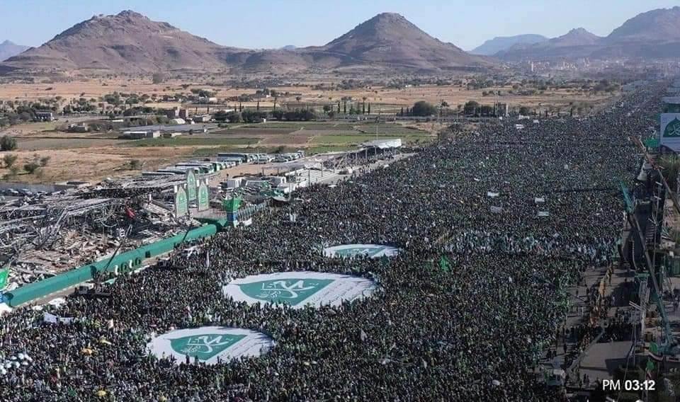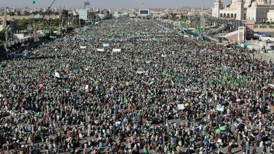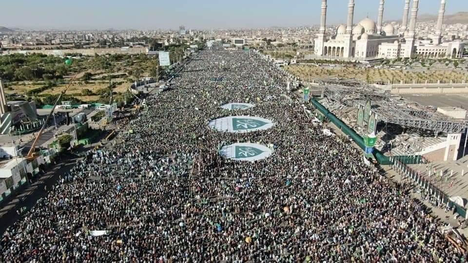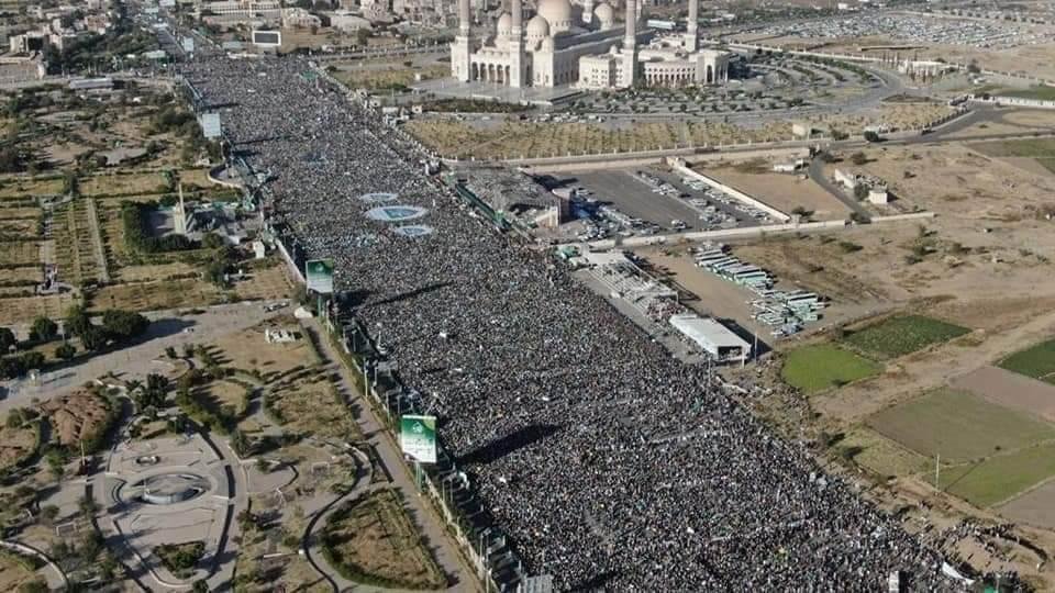 احتشد ملايين اليمنيين، اليوم الخميس، في العاصمة صنعاء، للاحتفال بالمولد النبوي والتنديد بالإساءة للإسلام وللرسول محمد صلى الله عليه وسلم.