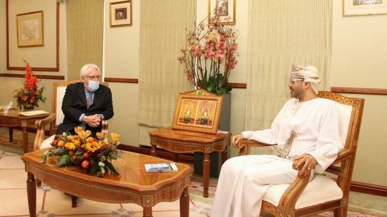 جاء ذلك وفق بيان للمبعوث الأممي، في ختام زيارة رسمية إلى سلطنة عمان، التقى خلالها كبير مفاوضي جماعة الحوثي محمد عبد السلام، ومسؤولين عمانيين (لم يسمهم).