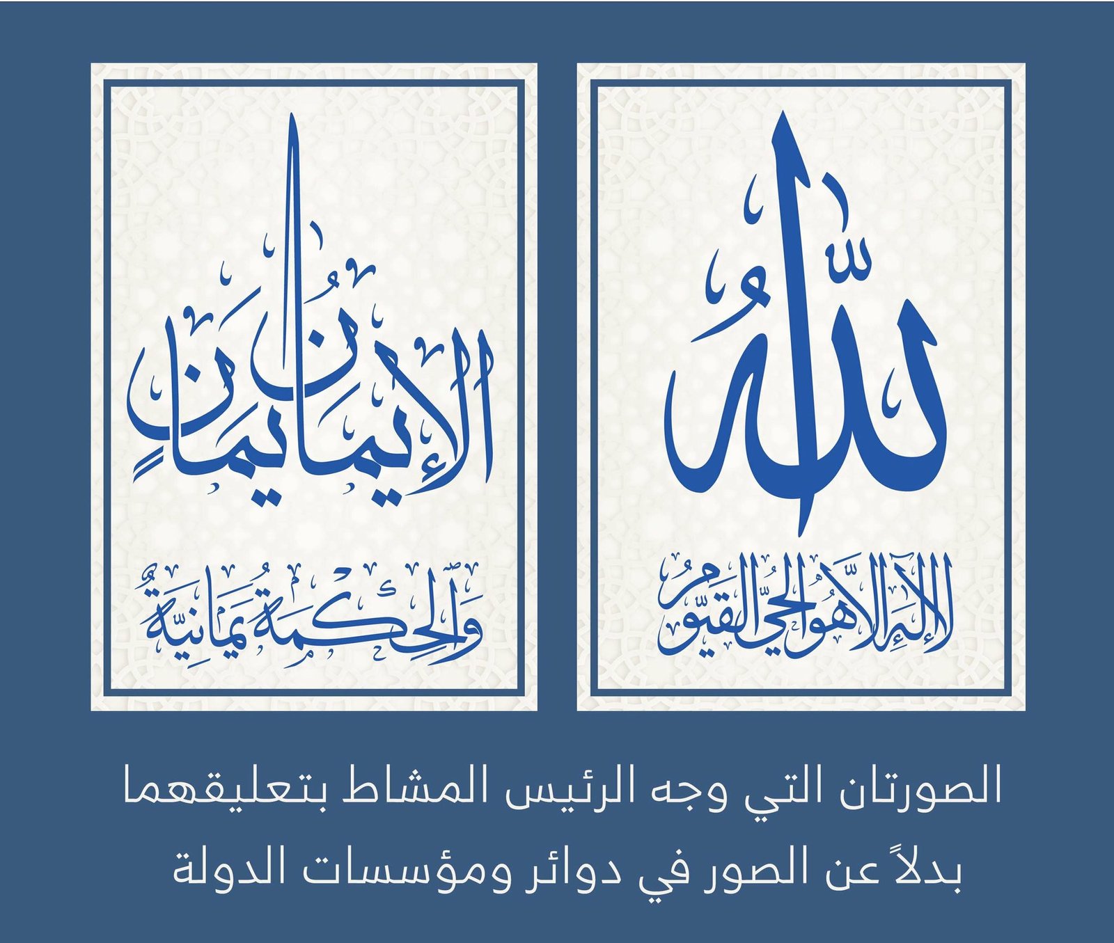كما أصدر مهدي المشاط توجيها بـ”إنزال الصور من جميع مكاتب ومؤسسات الدولة ورفع صور لفظ الجلالة”، وكذلك حديث نبوي يقول “الإيمان يمان والحكمة يمنية”.