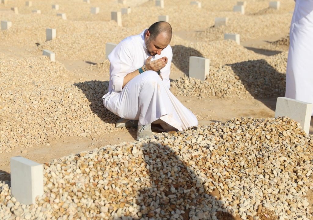 وأظهرت الصور أن الأمير خالد بن الوليد بن طلال كان يجثو على ركبتيه أمام قبر أمه ويرفع يديه إلى السماء ويدعو الله عزَّ وجل لها، في لقطات مؤثرة أثارت الحزن.