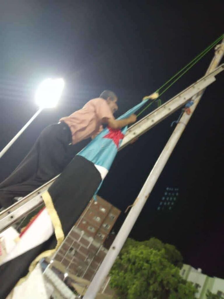 قالت مصادر محلية في عدن ان الانتقالي دفع بعدظ من مناصرية الى عدد من الشوارع للقيام برفع اعلام الجنوب في الجولات بمدينة عدن.