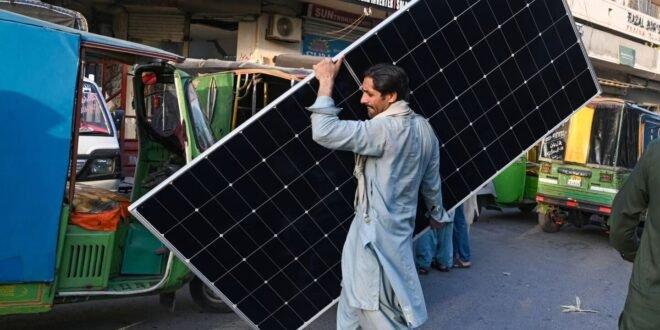 تهدد الألواح الشمسية الصينية، التي تستوردها باكستان بكثافة، بزيادة أعباء الديون الواقعة على كاهل شبكة الكهرباء في البلد الواقع في جنوب آسيا، نتيجة تزايد تحول المستهلكين إلى الطاقة المتجددة.