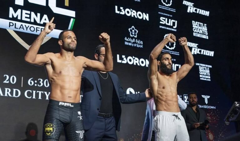 أقامت رابطة المقاتلين المحترفين، الخميس، فعالية الوزن الرسمية للدور نصف النهائي من نزالات الموسم الثالث لبطولة الشرق الأوسط وشمال أفريقيا، في استديوهات الرابطة في بوليفارد سيتي بالرياض في المملكة العربية السعودية، الذي يحتضن البطولة المقرر انطلاقها عند الساعة السادسة من مساء الجمعة، بمشاركة 18 مقاتلاً من 10 دول.