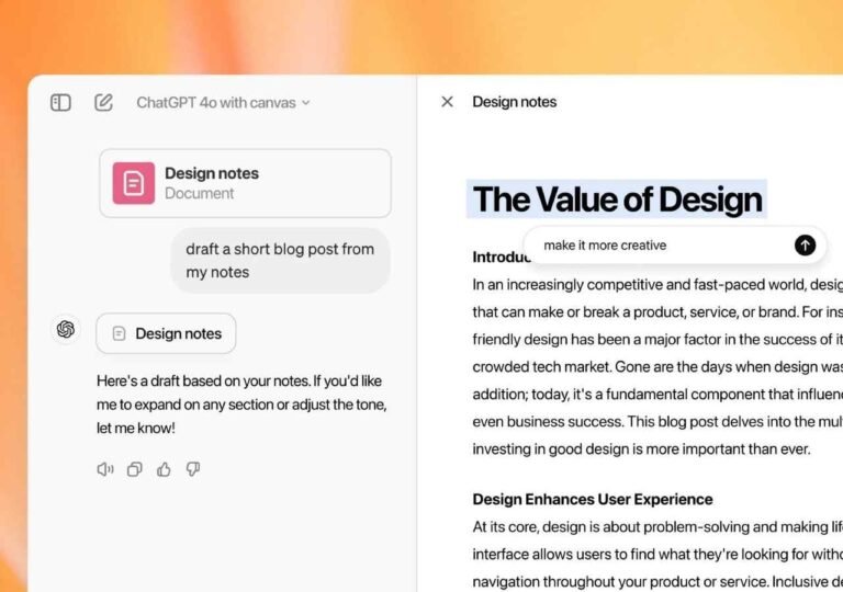 وتوفر Canvas مساحة افتراضية لمشاريع الكتابة والبرمجة، حيث يمكن للمستخدمين استشارة ChatGPT حول أجزاء معينة من المشروع. وتفتح نافذة منفصلة بجانب مساحة الدردشة الرئيسية، ويستطيع المستخدمون وضع النصوص أو الأكواد على هذه “اللوحة” الجديدة وتحديد الأقسام التي يريدون من النموذج التركيز عليها وتحريرها.