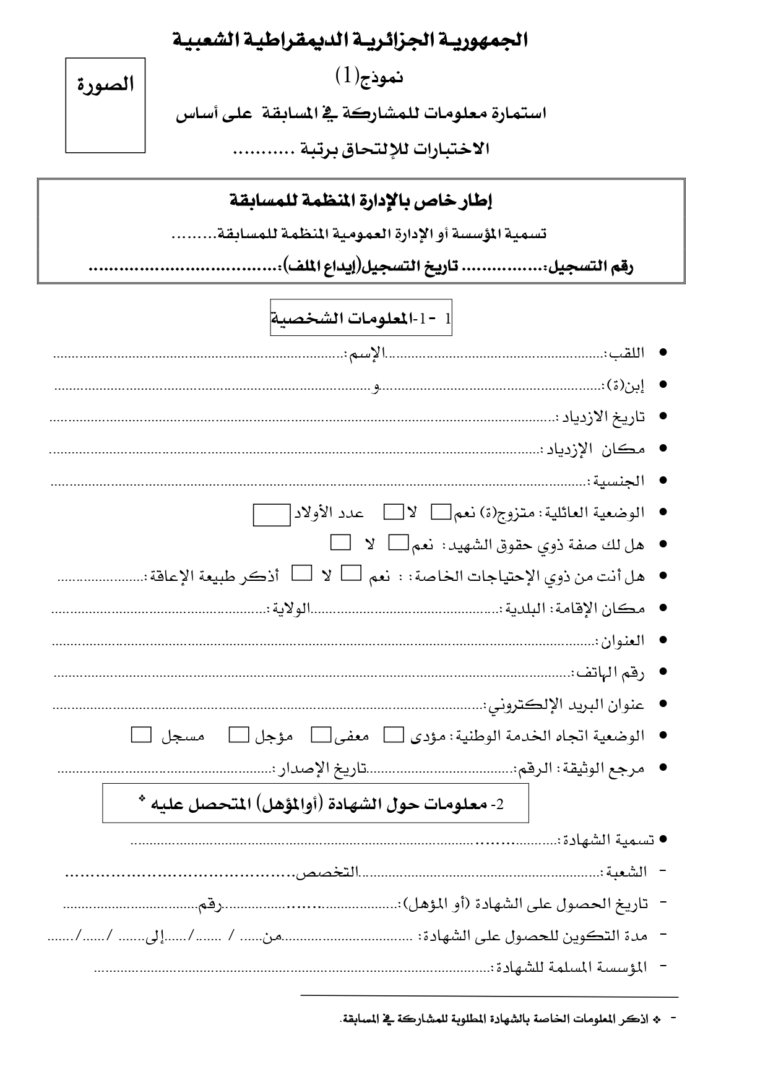 استمارة على أساس الاختبار pdf تظل في اهتمام الكثير، حيث تعتبر مسابقات التوظيف العمومي في الجزائر من أبرز الطرق التي يتم من خلالها توظيف الكفاءات في مختلف القطاعات الحكومية واحدة من أهم المستندات المطلوبة للمشاركة في هذه المسابقات هي استمارة على أساس الاختبار هذه الاستمارة تلعب دوراً محورياً في التقديم لأنها تحتوي على المعلومات الشخصية والتعليمية والمهنية للمترشح، مما يسهل على الجهات المختصة تقييم المرشحين بشكل عادل ومنصف.