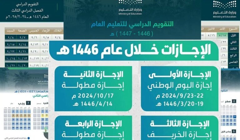 تعد الإجازة المدرسية مرضع اهتمام لكثير من الطلاب لأخذ فترة من الراحة، لذا أعلنت وزارة التعليم السعودية عن جدول اجازات المدارس 1446 في السعودية، ويحتوي جدول التقويم الدراسي لعام 1446 على عددا من الاجازات الرسمية والإجازات الممتدة عبر الثلاث فصول الدراسية، وذلك مع تخصيص موعد نهاية العام الدراسي الحالي، ويهدف ذلك الجدول الي تنظيم أوقات الدراسة والإجازات وتوفير فرص للراحة لدي الطلاب والمعلمين خلال العام الدراسي.
