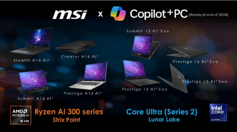 ولقد كشفت MSI خلال فعاليات IFA عن خط إنتاجها من أجهزة Copilot+ PC الذي ينقسم بين أجهزة مدعومة بمعالجات AMD Strix Point، وأخرى تضم سلسلة معالجاتIntel Lunar Lake، والتي تتضمن سلسلة “Prestige” فائقة النحافة، وسلسلة Summit، مع أجهزة Stealth A16، وCreator A16 وهي من أقوى الأجهزة المطورة من الشركة والتي تهدف لدعم كل مستخدم بجهاز مثالي بتقنية الذكاء الإصطناعي ويواكب إحتياجاته.