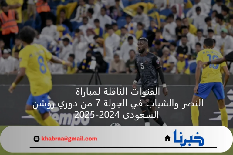 تذاع مباراة الشباب ضد النصر في الجولة السابعة من دوري روشن السعودي علي قناة ssc الرياضية السعودية والتي تمتلك حقوق بث مباريات دوري روشن داخل المملكة، وكما يمكن متابعة أحداث المباراة علي شكبة الأنترنت من خلال منصة شاهد vip التابعة لقنوات بي إن سبورت.