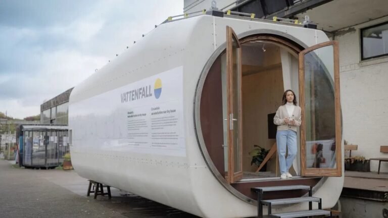يسلّط منزل صغير مصنوع من توربين رياح خرج من الخدمة قبل قرابة 20 عامًا، الضوء على نهجٍ إبداعي ومستدام في إعادة استعمال المواد الصناعية.