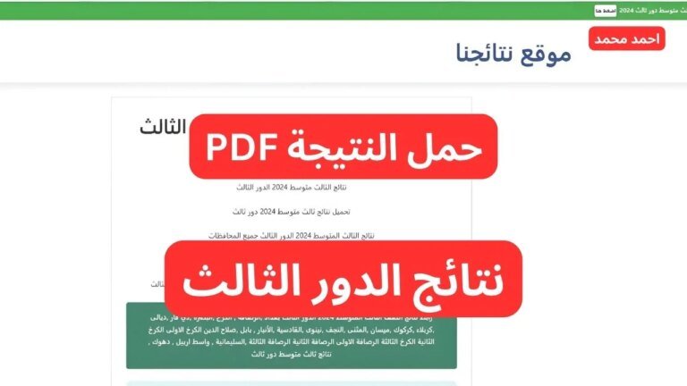 نقدم رابط نتائج الصف الثالث متوسط الدور الثالث 2024 PDF عبر موقع نتائجنا، حيث صدرت نتيجة الثالث المتوسط دور ثالث 2024 في العراق رسميًا مما يوفر للطلاب وأولياء الأمور فرصة الاطلاع على الدرجات النهائية والنتائج التي سعوا لتحقيقها بعد اجتيازهم للامتحانات الإضافية، تتيح وزارة التربية العراقية هذه النتائج عبر موقعها الرسمي وكذلك عبر موقع “نتائجنا” المعتمد، مما يجعل عملية الاستعلام أسهل وأسرع لجميع الطلاب في مختلف المحافظات، في هذا المقال، سنوضح كيفية الحصول على نتائج الثالث متوسط 2024 الدور الثالث عبر كلا الموقعين لضمان الوصول السريع والدقيق للنتائج.