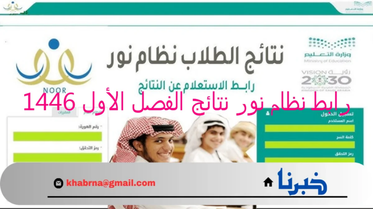 يترقب نحو 6000000 طالب وطالبة الدخول على رابط نظام نور للإستعلام الإلكتروني عن نتائج الفصل الدراسي الأول للعام الدراسي 1446، بعد أن أعلنت وزارة التعليم عن إغلاق الدرجات لنهاية الفصل الأول يوم الخميس 7 نوفمبر من الساعة 7:00 am للمرحلة الابتدائية والمتوسطة، ومن الساعة 12:00 pm للمرحلة الثانوية، وكانت وزارة التعليم في المملكة قد بدأت أختبارات الفصل الدراسي الأول يوم الأحد الماضي الموافق 3 نوفمبر، واستمرت حتى يوم الخميس 7 نوفمبر 2024، والآن الكل في ترقب لمعرفة نتائج الفصل الأول 1446، ونحن من خلال موقعكم خبرنا سنقدم لكم طريقة الإستعلام الإلكتروني عن نتائج الطلاب عبر رابط نظام نور والتطبيق الوطني الشامل توكلنا.